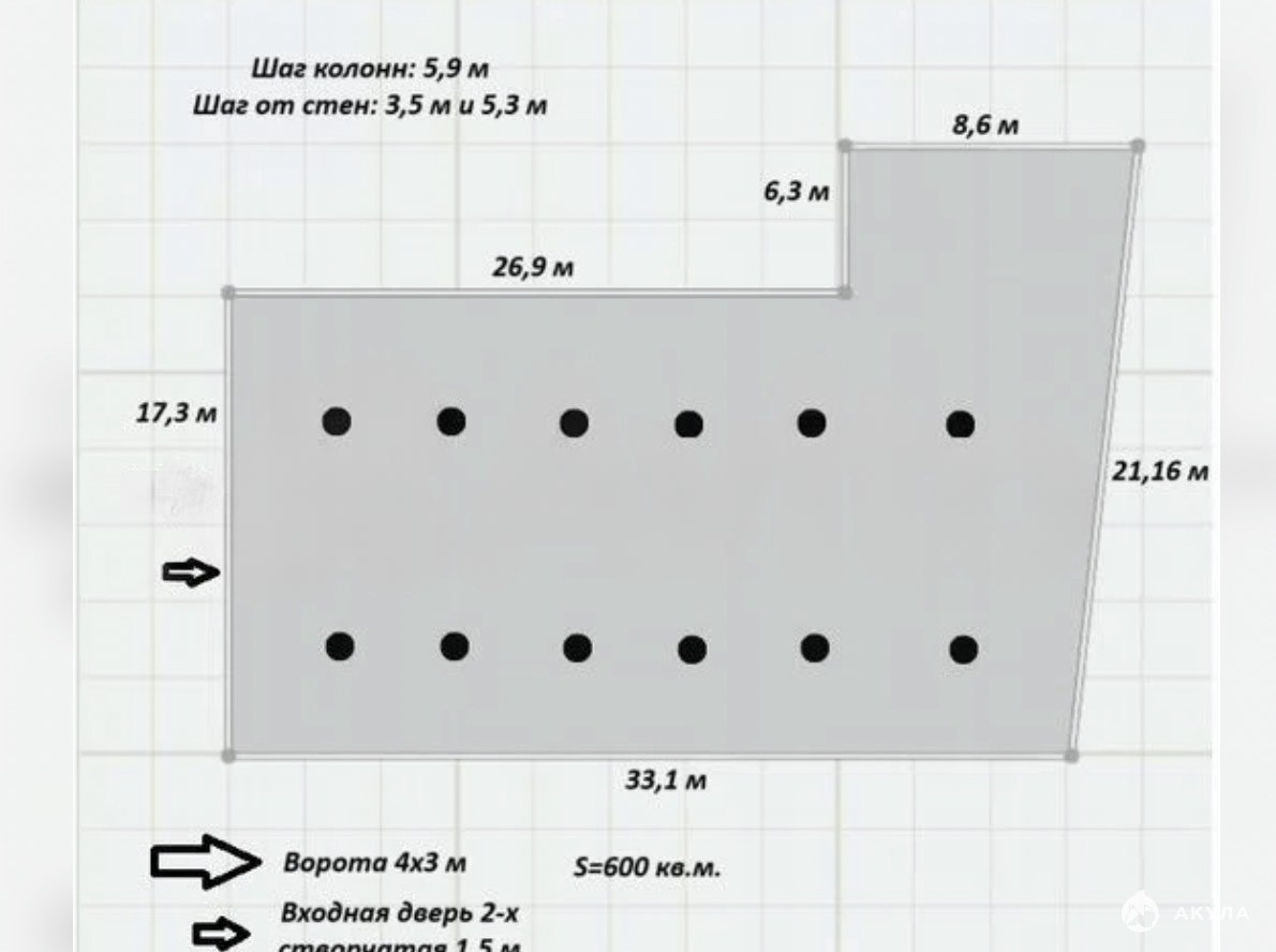 - полы (шлифованный бетон/антипыль/нагрузка до 7 тонн/кв.м.)
