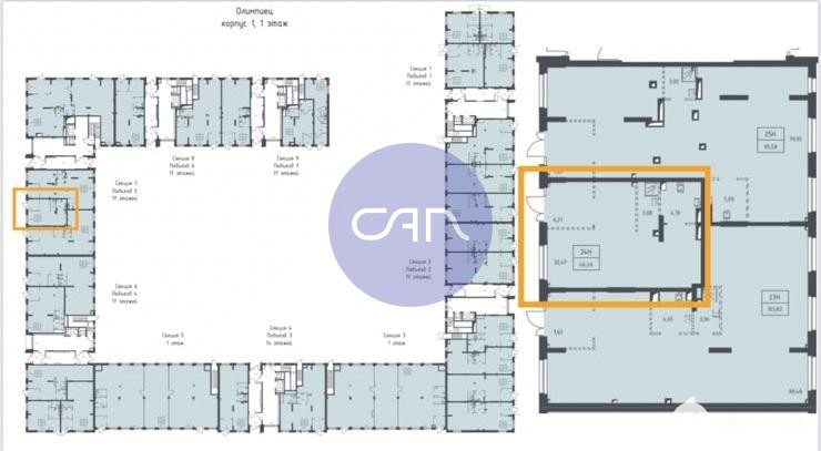 Помещение: 46, 5 м² на 1 этаже нового жилого комплекса с высоким пешеходным трафиком (25 000+ жителей).