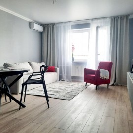 Квартира в современном монолитном доме, евроремонт, распашонка, панорамные виды из окон. Планировка квартиры: одна изолированная комната, кухня с мебельным гарнитуром и всей необходимой бытовой техникой, раздельный санузел, застеленная и утепленная лоджия с...
