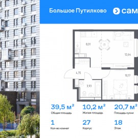 Строим кварталы для жизни с заботой о будущем. Предлагается 1-комнатная квартира комфорт-класса 39, 5 кв.м в корпусе 27 на 18 этаже, в ЖК «Большое Путилково» Квартира с чистовой отделкой. Доступность дополнительных опций уточняйте у застройщика. Приобрести квартиру возможно...