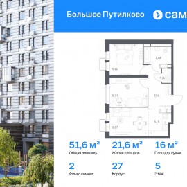 Строим кварталы для жизни с заботой о будущем. Предлагается 2-комнатная квартира комфорт-класса 51, 59 кв.м в корпусе 27 на 5 этаже, в ЖК «Большое Путилково» Квартира с чистовой отделкой. Доступность дополнительных опций уточняйте у застройщика. Приобрести квартиру возможно...