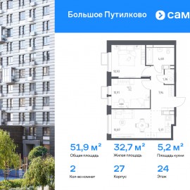 Строим кварталы для жизни с заботой о будущем. Предлагается 2-комнатная квартира комфорт-класса 51, 86 кв.м в корпусе 27 на 24 этаже, в ЖК «Большое Путилково» Квартира с чистовой отделкой. Доступность дополнительных опций уточняйте у застройщика. Приобрести квартиру возможно...