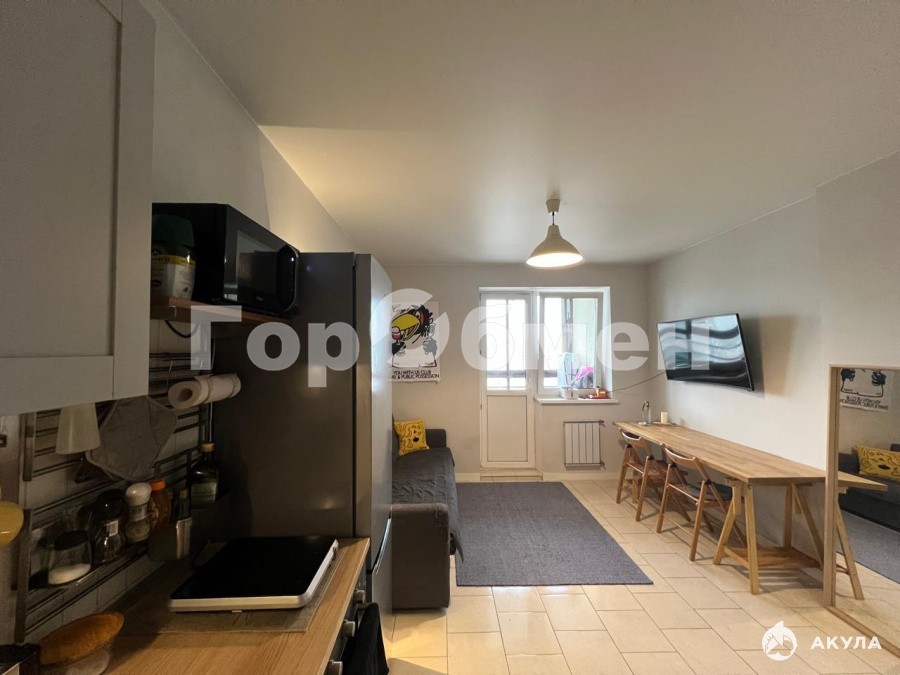 Большая кухня - гостиная с выходом на балкон, изолированная комната - спальня, большой совмещенный сан/узел.