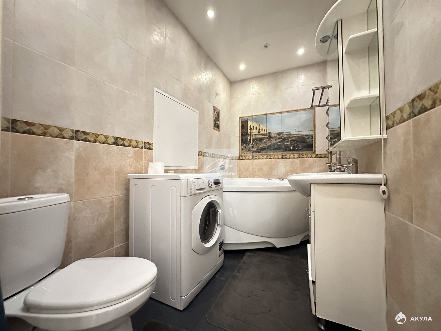 В санузле установлена джакузи и стиральная машина с функцией сушки.
