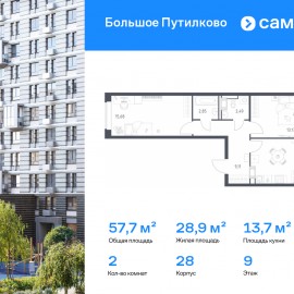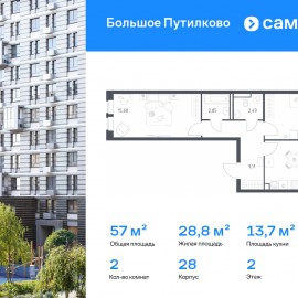Строим кварталы для жизни с заботой о будущем. Предлагается 2-комнатная квартира комфорт-класса 57, 54 кв.м в корпусе 28 на 13 этаже, в ЖК «Большое Путилково» Квартира с чистовой отделкой. Доступность дополнительных опций уточняйте у застройщика. Приобрести квартиру возможно...