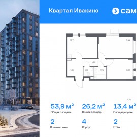 Строим кварталы для жизни с заботой о будущем. Предлагается 2-комнатная квартира комфорт-класса 53, 86 кв.м в корпусе 4 на 2 этаже, в ЖК «Квартал Ивакино» Квартира с чистовой отделкой. Доступность дополнительных опций уточняйте у застройщика. Приобрести квартиру возможно по...