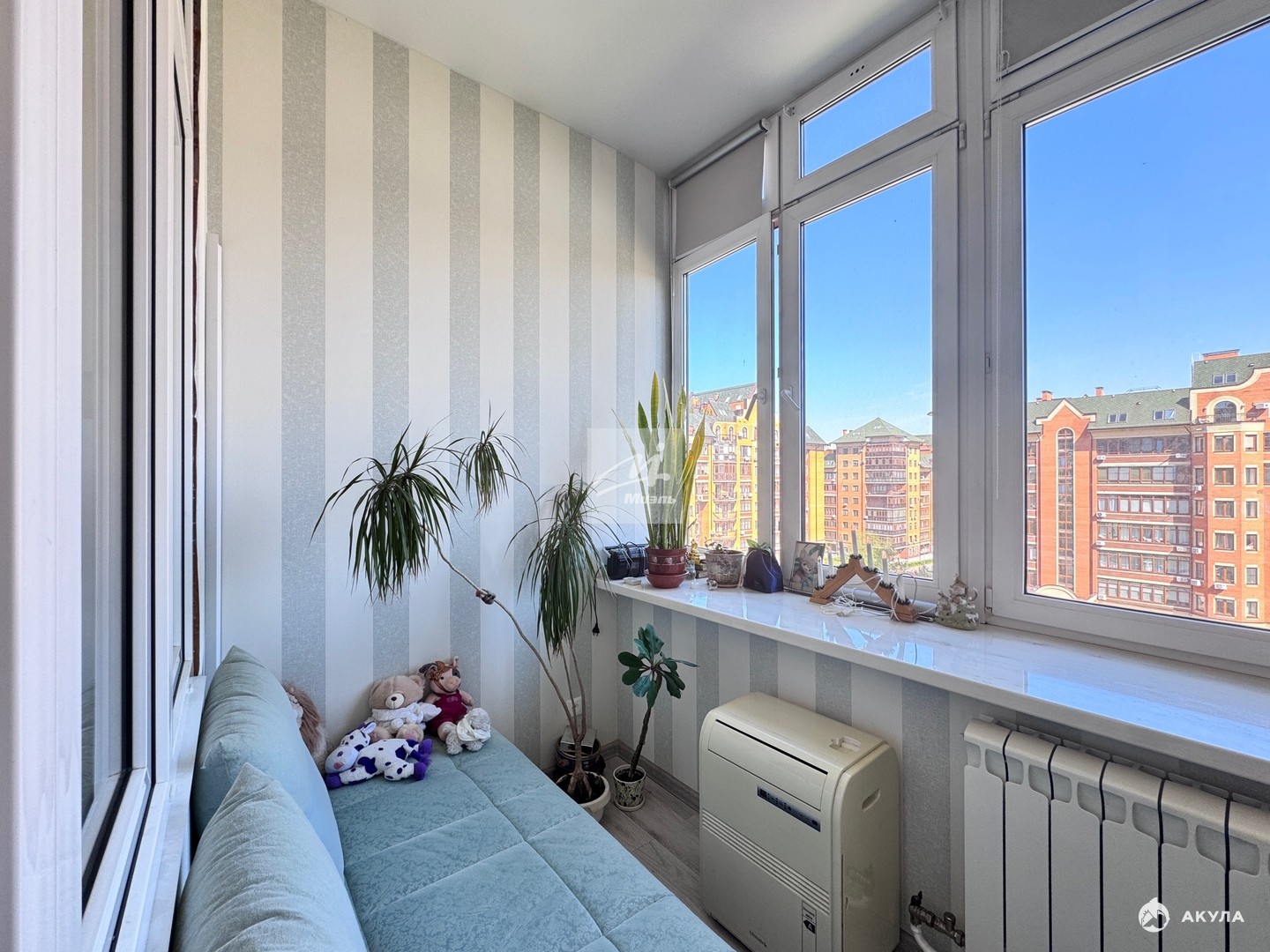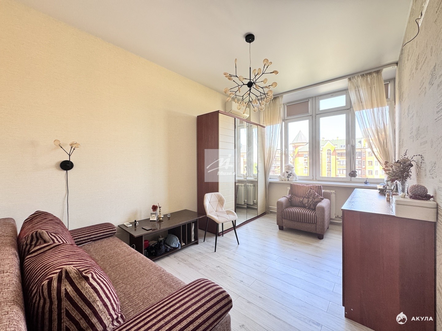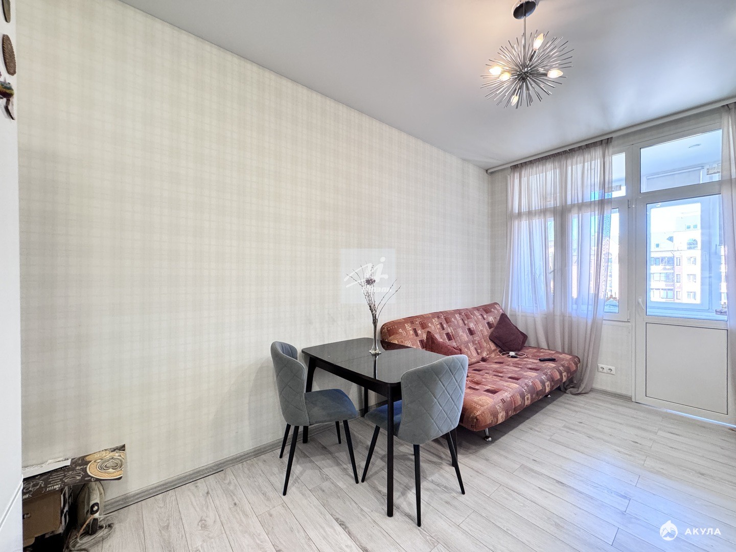 - Просторная кухня-гостиная с выделенной зоной кабинета, большая спальная комнатой правильной формы, кладовая комната, раздельный санузел.