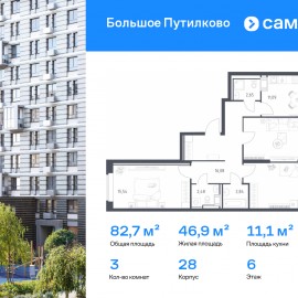 Строим кварталы для жизни с заботой о будущем. Предлагается 3-комнатная квартира комфорт-класса 82, 73 кв.м в корпусе 28 на 12 этаже, в ЖК «Большое Путилково» Квартира с чистовой отделкой. Доступность дополнительных опций уточняйте у застройщика. Приобрести квартиру возможно...