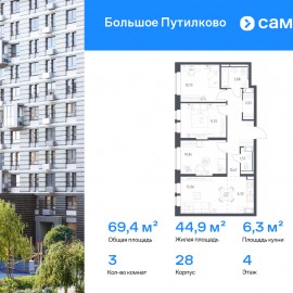 Строим кварталы для жизни с заботой о будущем. Предлагается 3-комнатная квартира комфорт-класса 69, 96 кв.м в корпусе 28 на 16 этаже, в ЖК «Большое Путилково» Квартира с чистовой отделкой. Доступность дополнительных опций уточняйте у застройщика. Приобрести квартиру возможно...