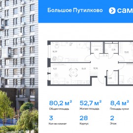 Строим кварталы для жизни с заботой о будущем. Предлагается 3-комнатная квартира комфорт-класса 81, 95 кв.м в корпусе 28 на 2 этаже, в ЖК «Большое Путилково» Квартира с чистовой отделкой. Доступность дополнительных опций уточняйте у застройщика. Приобрести квартиру возможно...