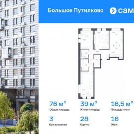 Строим кварталы для жизни с заботой о будущем. Предлагается 3-комнатная квартира комфорт-класса 75, 98 кв.м в корпусе 28 на 16 этаже, в ЖК «Большое Путилково» Квартира с чистовой отделкой. Доступность дополнительных опций уточняйте у застройщика. Приобрести квартиру возможно...