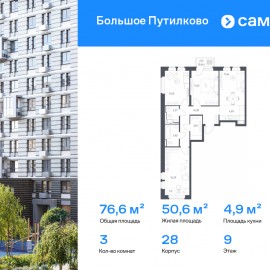 Строим кварталы для жизни с заботой о будущем. Предлагается 3-комнатная квартира комфорт-класса 76, 62 кв.м в корпусе 28 на 9 этаже, в ЖК «Большое Путилково» Квартира с чистовой отделкой. Доступность дополнительных опций уточняйте у застройщика. Приобрести квартиру возможно...