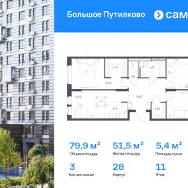 Строим кварталы для жизни с заботой о будущем. Предлагается 3-комнатная квартира комфорт-класса 79, 88 кв.м в корпусе 28 на 11 этаже, в ЖК «Большое Путилково» Квартира с чистовой отделкой. Доступность дополнительных опций уточняйте у застройщика. Приобрести квартиру возможно...