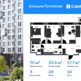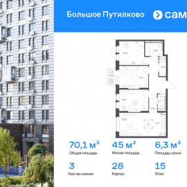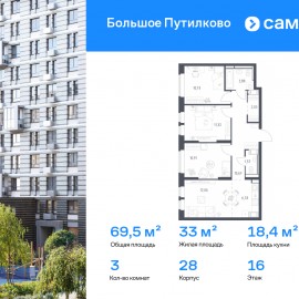 Строим кварталы для жизни с заботой о будущем. Предлагается 3-комнатная квартира комфорт-класса 69, 5 кв.м в корпусе 28 на 16 этаже, в ЖК «Большое Путилково» Квартира с чистовой отделкой. Доступность дополнительных опций уточняйте у застройщика. Приобрести квартиру возможно...