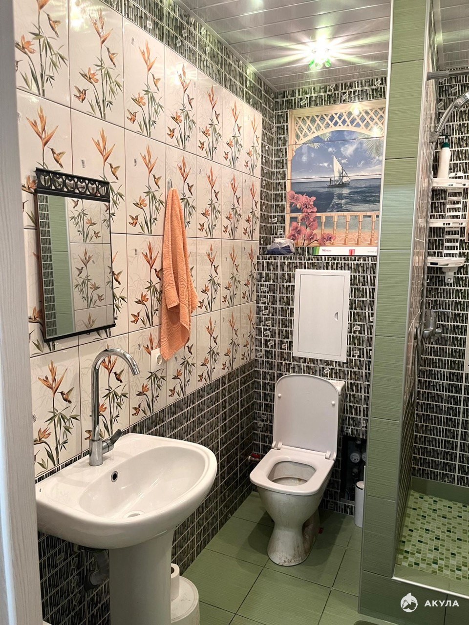 - Отделочные удобства: квартира оснащена тремя отдельными санузлами, включая душевую кабинку, унитаз и зону стиральной машины.