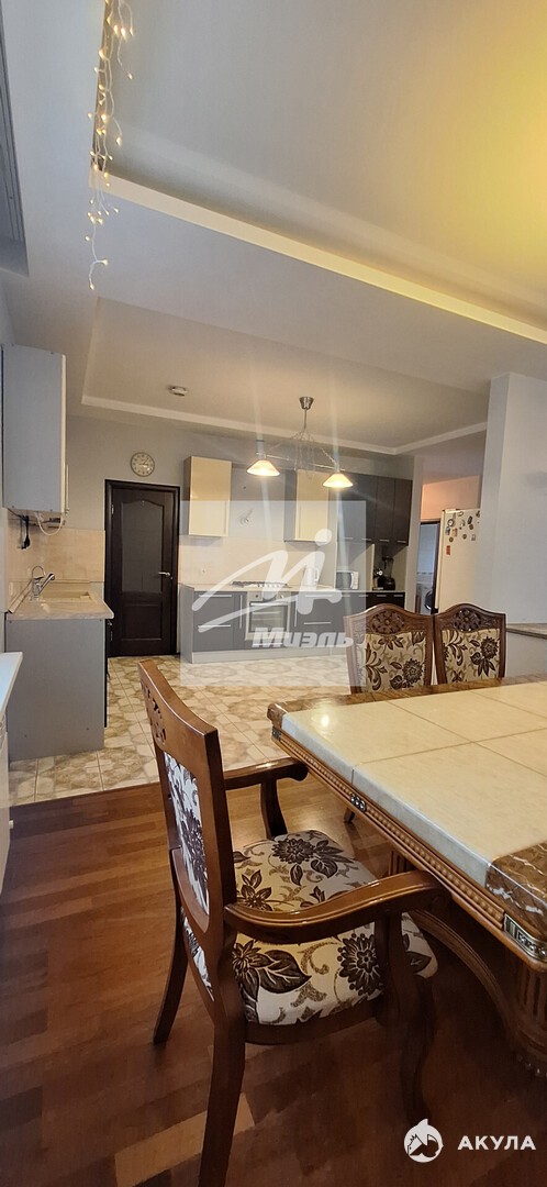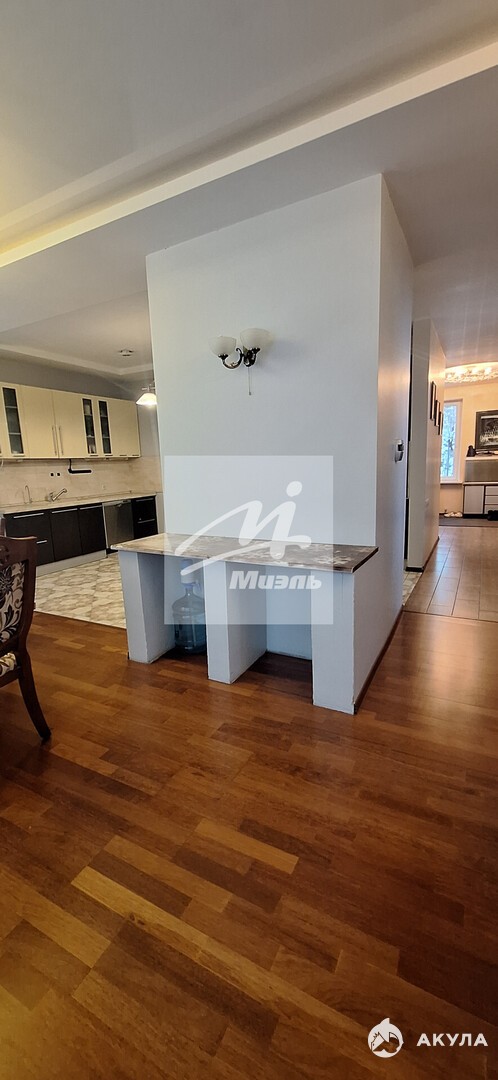 На 1 этаже располагается большая кухня с гостиной, позволяющая собрать за большим столом семью, санузел, рабочий кабинет (может использоваться, как отдельная комната), гардеробная.